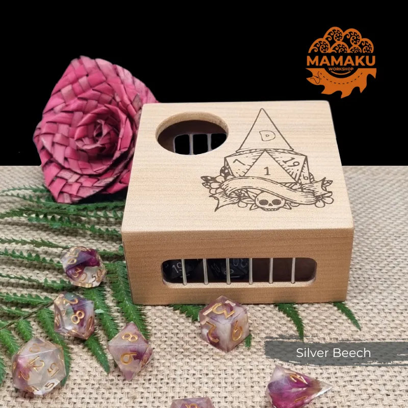 Lock your misbehaving dice behind bars! Give your dice time to reflect on their poor behaviour, in one of our native timber dice jails. These large size jails easily hold a dozen D20s up to 20mm in size, though if you need to jail that many, we hope you have a backup character ready!